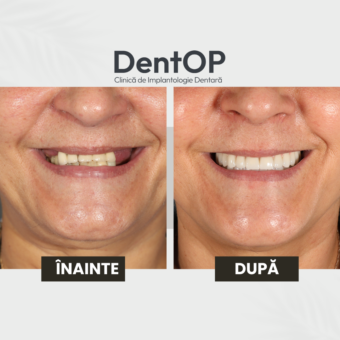 Pentru a-i reda funcționalitatea dentară, dar și o estetică armonioasă a fost nevoie de inserarea a 6 implanturi convențională la maxilar, și 6 la mandibulă.
